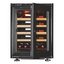Производители предлагают винные шкафы, оснащенные одной, двумя, тремя и четырьмя камерами, которые могут располагаться как друг под другом, так бок и бок. Самые популярные — однокамерные модели, ассортимент которых особенно широк, но втором месте — двухкамерные. Над заметить, что количество камер не зависит напрямую от габаритов изделия: например, однокамерные модели увеличенных габаритов — далеко не редкость. Их высота может варьироваться в пределах от 14 см до 219 см, а ширина — от 13 см до 150 см.
