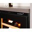 Современные винные шкафы всех типов, в том числе компрессорные, темоэлектрические и абсорбционные, оснащаются электронной системой управления — кнопочной или сенсорной. Панель управления, с помощью которой производится регулировка параметров работы, может размещаться внутри винного шкафа за дверцей или снаружи в верхней части корпуса. Второй вариант более удобен, поскольку для изменения параметров не нужно открывать дверцу. Кроме того, такое расположение панели управления позволяет поддерживать более стабильную температуру в камере. Однако для больших винных шкафов в классическом стиле из ценных пород дерева предпочтительнее скрытая панель управления, которая не портит их внешний вид.