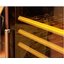 Дверца у большинства винных шкафов изготавливается из многослойного тонированного стекла. Такой материал, с одной стороны, позволяет оценивать коллекцию вин визуально, не открывая дверцу, в условиях стабильной температуры и влажности. С другой стороны, затемненное стекло с УФ-фильтром в виде напыления или специальной пленки надежно изолирует винные бутылки негативного воздействия ультрафиолетового излучения. Несколько слоев стекла обеспечивают при этом дополнительную защиту. Очень часто стекло в дверце заключается в рамку из дерева или металла. Натуральный или окрашенный металл или дерево не только способствуют прочности конструкции, но и превращают винный холодильник, особенно отдельно стоящий, в эффектный элемент обстановки.