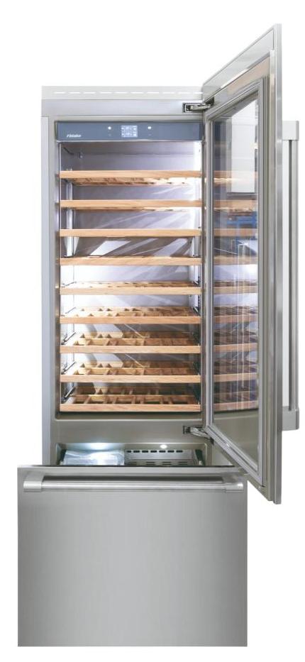 Винный холодильник Fhiaba RS750TWT6 имеет две температурные зоны, в которых одновременно можно хранить разные сорта алкоголя и выставлять разные сочетания настроек. Он встраивается в нишу, что удобно, если у вас ограничен метраж помещения. Количество бутылок, которое можно разместить с учетом полной комплектации и из расчета объема бутылки 0,75 л, — 81 шт.