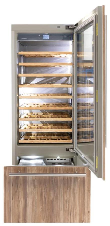 Винный холодильник Fhiaba S750TWT6 имеет две температурные зоны, в которых одновременно можно хранить разные сорта алкоголя и выставлять разные сочетания настроек. Он встраивается в нишу, что удобно, если у вас ограничен метраж помещения. Количество бутылок, которое можно разместить с учетом полной комплектации и из расчета объема бутылки 0,75 л, — 81 шт.