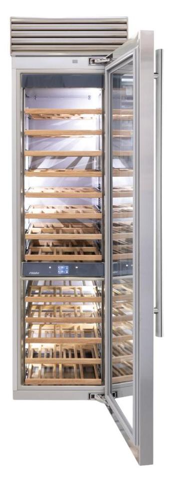 Винный холодильник Fhiaba XS600FW6 имеет две температурные зоны, в которых одновременно можно хранить разные сорта алкоголя и выставлять разные сочетания настроек. Он встраивается в нишу, что удобно, если у вас ограничен метраж помещения. Количество бутылок, которое можно разместить с учетом полной комплектации и из расчета объема бутылки 0,75 л, — 78 шт.