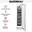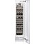 Холодильник для вина Гаггенау объемом 310 л рассчитан на 70 стандартных бутылок объемом 0,75 л. Его габариты — 45 см в ширину, 212 см в высоту и 60 см в глубину, что позволяет разместить его в ряд с другой подобной техникой в конфигурации Side-by-Side. Корпус выполнен из нержавеющей стали, внутренняя отделка также стальная. Двенадцать полок (в том числе 10 выдвигающихся), изготовленных из натурального бука с алюминиевой рамкой, предназначены для хранения бутылок в горизонтальном положении, а три полки рассчитаны на крупные бутылки формата Magnum.