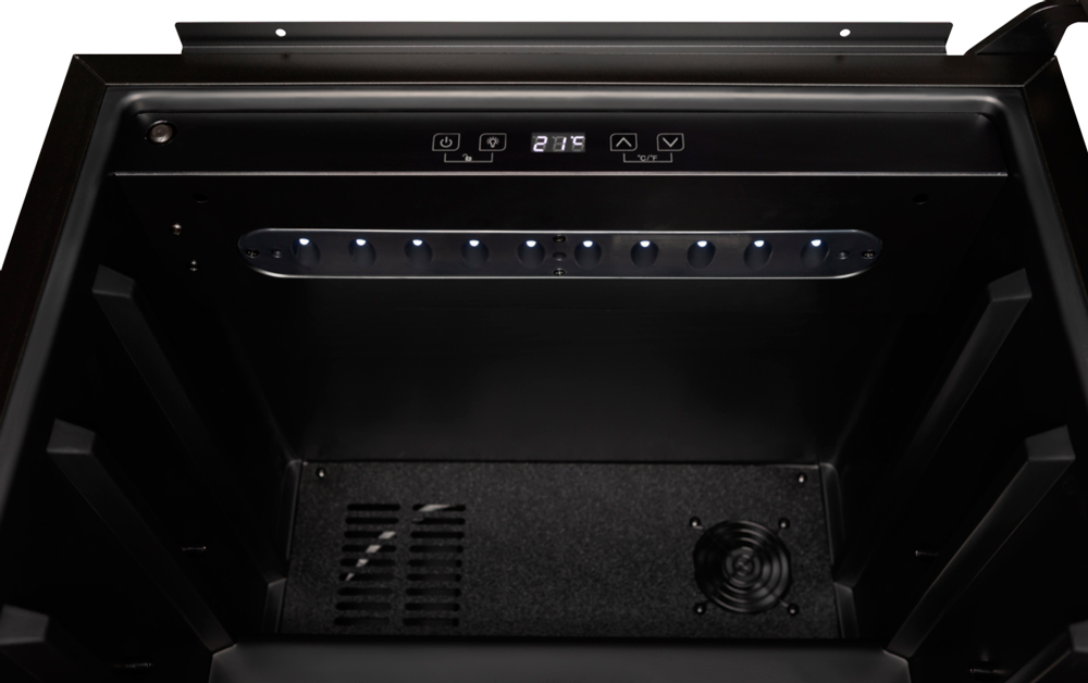 Необходима моделям со стеклянными дверьми. Стекло затемняется и благодаря тонкому покрытию с UV-фильтром не пропускает ультрафиолетовые лучи, которые неблагоприятно влияют на вино.