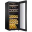 Винный холодильник Haier FWC77GDAE1 имеет две температурные зоны, в которых одновременно можно хранить разные сорта алкоголя и выставлять разные сочетания настроек. Он устанавливается отдельно, что удобно, если у вас есть специальное помещение — кладовая, погреб и т.д. Количество бутылок, которое можно разместить с учетом полной комплектации и из расчета объема бутылки 0,75 л, — 77 шт.