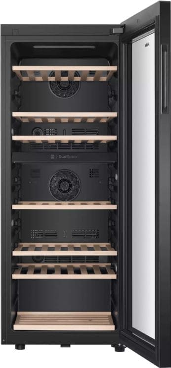 Винный холодильник Haier FWC77GDAU1 имеет две температурные зоны, в которых одновременно можно хранить разные сорта алкоголя и выставлять разные сочетания настроек. Он устанавливается отдельно, что удобно, если у вас есть специальное помещение — кладовая, погреб и т.д. Количество бутылок, которое можно разместить с учетом полной комплектации и из расчета объема бутылки 0,75 л, — 77 шт.