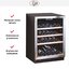 Современные винные шкафы всех типов, в том числе компрессорные, темоэлектрические и абсорбционные, оснащаются электронной системой управления — кнопочной или сенсорной. Панель управления, с помощью которой производится регулировка параметров работы, может размещаться внутри винного шкафа за дверцей или снаружи в верхней части корпуса. Второй вариант более удобен, поскольку для изменения параметров не нужно открывать дверцу. Кроме того, такое расположение панели управления позволяет поддерживать более стабильную температуру в камере. Однако для больших винных шкафов в классическом стиле из ценных пород дерева предпочтительнее скрытая панель управления, которая не портит их внешний вид.