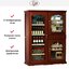 Производители предлагают винные шкафы, оснащенные одной, двумя, тремя и четырьмя камерами, которые могут располагаться как друг под другом, так бок и бок. Самые популярные — однокамерные модели, ассортимент которых особенно широк, но втором месте — двухкамерные. Над заметить, что количество камер не зависит напрямую от габаритов изделия: например, однокамерные модели увеличенных габаритов — далеко не редкость. Их высота может варьироваться в пределах от 14 см до 219 см, а ширина — от 13 см до 150 см.