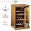 Электронное управление помогает быстро разобраться в том, как функционирует эта модель, и легко настроить все необходимые параметры. На дисплее отображаются данные, которые собирают датчики в камере. Цифровой термометр позволяет контролировать, соблюдаются ли оптимальные условия. Лампочки, расположенные внутри, хорошо подсвечивают бутылки. Всего полок, на которых можно разместить коллекцию, в шкафу 4 шт.