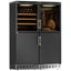 Производители предлагают винные шкафы, оснащенные одной, двумя, тремя и четырьмя камерами, которые могут располагаться как друг под другом, так бок и бок. Самые популярные — однокамерные модели, ассортимент которых особенно широк, но втором месте — двухкамерные. Над заметить, что количество камер не зависит напрямую от габаритов изделия: например, однокамерные модели увеличенных габаритов — далеко не редкость. Их высота может варьироваться в пределах от 14 см до 219 см, а ширина — от 13 см до 150 см.