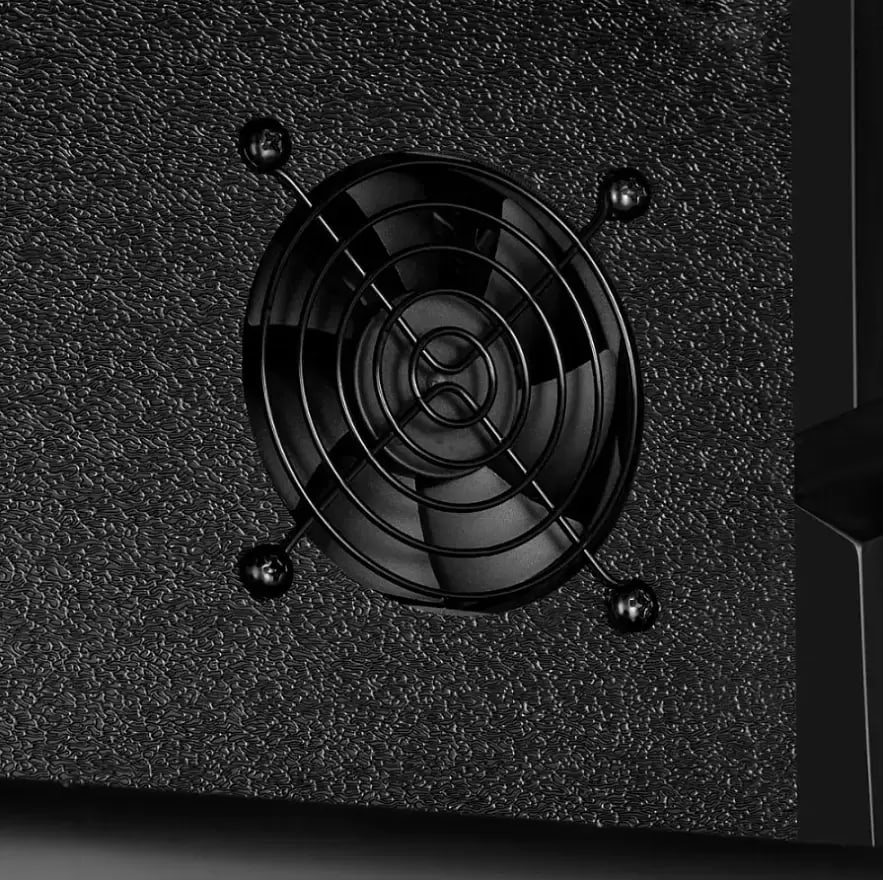 Стеклянная дверь — дополнительный изящный штрих к общему дизайну модели. Цвет корпуса — черный.