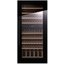 Стеклянная дверь — дополнительный изящный штрих к общему дизайну модели. Специальное покрытие защищает вино от влияния ультрафиолетовых лучей, которые проникают, если шкаф находится в солнечной комнате. Цвет корпуса — черный. Дверь можно перевесить на другую сторону, поэтому вариантов размещения его в доме становится больше.