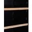 Полки в винных шкафах позволяют размещать бутылки для хранения в горизонтальном положении. Это необходимо, чтобы пробка постоянно смачивалась жидкостью и не пересыхала. Плотно закрытая пробка гарантирует, что внутрь бутылки не проникнет наружный воздух. Кислород, содержащийся в воздухе, может стать причиной ухудшения вкуса вина и даже его скисания. Кроме того, горизонтальное положение позволяет лучше оценить количество осадка. Материал изготовления полок выбирается, исходя из требований, предъявляемых к содержанию коллекции вин. Одним из основных требования является отсутствие или максимальное сокращение вибрации и хорошая фиксация бутылок на месте хранения. Даже если полка выдвигается, бутылки должны оставаться на своем месте. Второе требование исключает применение стеклянных полок, как в обычном холодильнике: на них почти невозможно зафиксировать бутылки.