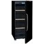 Дверца у большинства винных шкафов изготавливается из многослойного тонированного стекла. Такой материал, с одной стороны, позволяет оценивать коллекцию вин визуально, не открывая дверцу, в условиях стабильной температуры и влажности. С другой стороны, затемненное стекло с УФ-фильтром в виде напыления или специальной пленки надежно изолирует винные бутылки негативного воздействия ультрафиолетового излучения. Несколько слоев стекла обеспечивают при этом дополнительную защиту. Очень часто стекло в дверце заключается в рамку из дерева или металла. Натуральный или окрашенный металл или дерево не только способствуют прочности конструкции, но и превращают винный холодильник, особенно отдельно стоящий, в эффектный элемент обстановки.