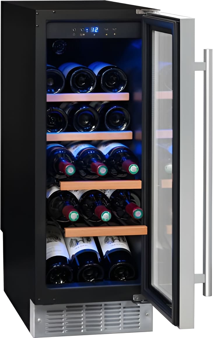 Винный холодильник La Sommeliere CVDE21M имеет одну температурную зону, в которой можно разместить бутылки и единовременно выставить только одну комбинацию настроек. Он встраивается в нишу, что удобно, если у вас ограничен метраж помещения. Благодаря компактным размерам данная модель — отличный выбор для офиса, гостиничного номера. Количество бутылок, которое можно разместить с учетом полной комплектации и из расчета объема бутылки 0,75 л, — 21 шт.