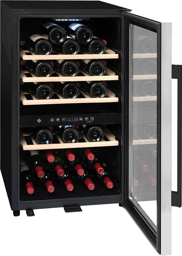 Двухзонный винный шкаф для подготовки вина к подаче ECS51.2Z вместимостью на 49 бутылок. ECS51.2Z впишется в любой интерьер благодаря классической черной отделке и серебристым деталям. Стекло, металл и дерево — одни из благородных материалов, использованных при оформлении этого компактного и высококачественного шкафа. Этот винный шкаф оснащен системой удаленного мониторинга и управления через приложение Vinotag.