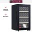 Производители предлагают винные шкафы, оснащенные одной, двумя, тремя и четырьмя камерами, которые могут располагаться как друг под другом, так бок и бок. Самые популярные — однокамерные модели, ассортимент которых особенно широк, но втором месте — двухкамерные. Над заметить, что количество камер не зависит напрямую от габаритов изделия: например, однокамерные модели увеличенных габаритов — далеко не редкость. Их высота может варьироваться в пределах от 14 см до 219 см, а ширина — от 13 см до 150 см.