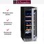 Производители предлагают винные шкафы, оснащенные одной, двумя, тремя и четырьмя камерами, которые могут располагаться как друг под другом, так бок и бок. Самые популярные — однокамерные модели, ассортимент которых особенно широк, но втором месте — двухкамерные. Над заметить, что количество камер не зависит напрямую от габаритов изделия: например, однокамерные модели увеличенных габаритов — далеко не редкость. Их высота может варьироваться в пределах от 14 см до 219 см, а ширина — от 13 см до 150 см.