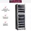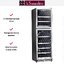 Производители предлагают винные шкафы, оснащенные одной, двумя, тремя и четырьмя камерами, которые могут располагаться как друг под другом, так бок и бок. Самые популярные — однокамерные модели, ассортимент которых особенно широк, но втором месте — двухкамерные. Над заметить, что количество камер не зависит напрямую от габаритов изделия: например, однокамерные модели увеличенных габаритов — далеко не редкость. Их высота может варьироваться в пределах от 14 см до 219 см, а ширина — от 13 см до 150 см.