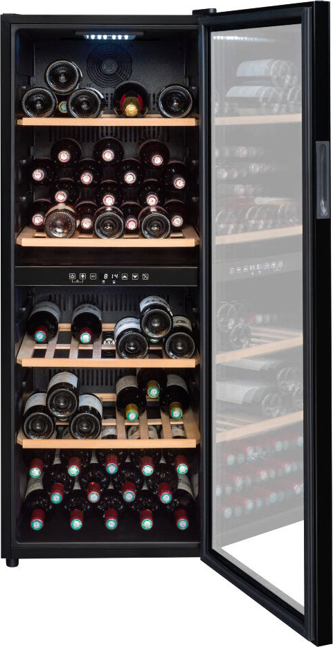 Количество камер — одна из важных характеристик, учитываемых при выборе винного шкафа. Достаточно часто покупатели не различают понятия камеры и температурной зоны в холодильнике для хранения вин. Камера в подобном шкафу ничем не отличается от камеры в обычном холодильнике: это часть внутреннего пространства, имеющая отдельную дверцу. В камере может быть выделено несколько температурных зон, условия в которых могут регулироваться раздельно. Однокамерный прибор может иметь от одной до шести зон, а в двухкамерном может располагаться от одной до четырех зон. Например, большие шкафы Dometic с компоновкой side-by-side имеют по две температурные зоны в каждой камере.