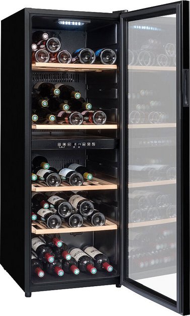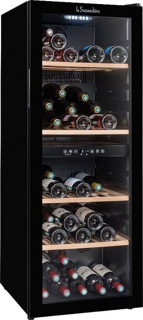 Производители предлагают винные шкафы, оснащенные одной, двумя, тремя и четырьмя камерами, которые могут располагаться как друг под другом, так бок и бок. Самые популярные — однокамерные модели, ассортимент которых особенно широк, но втором месте — двухкамерные. Над заметить, что количество камер не зависит напрямую от габаритов изделия: например, однокамерные модели увеличенных габаритов — далеко не редкость. Их высота может варьироваться в пределах от 14 см до 219 см, а ширина — от 13 см до 150 см.
