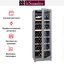 Производители предлагают винные шкафы, оснащенные одной, двумя, тремя и четырьмя камерами, которые могут располагаться как друг под другом, так бок и бок. Самые популярные — однокамерные модели, ассортимент которых особенно широк, но втором месте — двухкамерные. Над заметить, что количество камер не зависит напрямую от габаритов изделия: например, однокамерные модели увеличенных габаритов — далеко не редкость. Их высота может варьироваться в пределах от 14 см до 219 см, а ширина — от 13 см до 150 см.