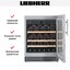 Винный шкаф Liebherr UWKes 1752 — модель австрийского производства высотой 81 см и вместимостью 46 бутылок для размещения под столешницей. Фасад изготовлен из нержавеющей стали и дополнен удобной вертикальной ручкой. Сенсорное управление с ЖК-дисплеем MagicEye позволяет настраивать температуру в диапазоне + 5°С до +20°С и выбирать прочие параметры работы. Панель управления можно заблокировать от детей. Стальная дверца с изолирующим стеклопакетом защищает вино от проникновения ультрафиолета. Корпус целиком изготовлен из стали и отличается особой прочностью. Автоматическая система размораживания упрощает уход за прибором. Три полки, изготовленные из натурального дерева, можно легко выдвинуть на телескопических направляющих. О превышении заданной температуры в камере и других неисправностях оповещает световая и звуковая сигнализация. Сменный фильтр из активированного угля защищает от посторонних запахов, которые могут возникнуть при длительном хранении. Модель относится к климатическому классу SN-ST и может эксплуатироваться в широком диапазоне температур от + 10 до +38 °С. Сохранности коллекции вин способствует малый уровень шума 40 дБ.