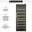 Стеклянная дверь — дополнительный изящный штрих к общему дизайну модели. Специальное покрытие защищает вино от влияния ультрафиолетовых лучей, которые проникают, если шкаф находится в солнечной комнате. Цвет корпуса — черный. Дверь можно перевесить на другую сторону, поэтому вариантов размещения его в доме становится больше.