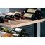 Полки в винных шкафах позволяют размещать бутылки для хранения в горизонтальном положении. Это необходимо, чтобы пробка постоянно смачивалась жидкостью и не пересыхала. Плотно закрытая пробка гарантирует, что внутрь бутылки не проникнет наружный воздух. Кислород, содержащийся в воздухе, может стать причиной ухудшения вкуса вина и даже его скисания. Кроме того, горизонтальное положение позволяет лучше оценить количество осадка. Материал изготовления полок выбирается, исходя из требований, предъявляемых к содержанию коллекции вин. Одним из основных требования является отсутствие или максимальное сокращение вибрации и хорошая фиксация бутылок на месте хранения. Даже если полка выдвигается, бутылки должны оставаться на своем месте. Второе требование исключает применение стеклянных полок, как в обычном холодильнике: на них почти невозможно зафиксировать бутылки.