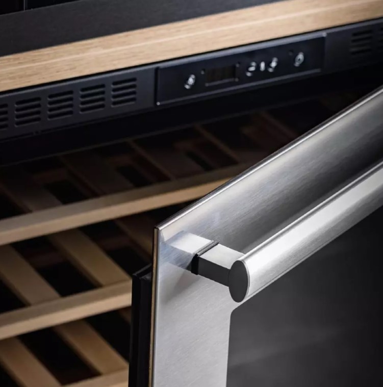 Расположение дверного упора у винных шкафов определяется не только особенностями модели, но и типом дверцы, а также возможностью встраивания. У самых распространенных винных холодильников с навесной дверцей такой упор может располагаться как слева, так и справа: у большинства моделей имеется возможность перенавешивания дверцы. Такая опция особенно удобна, если предполагается установка шкафа side-by-side с другим холодильником. Отдельно следует рассмотреть небольшие винные шкафы с откидной дверцей, которые могут встраиваться в колонну. У них дверной упор располагается снизу.