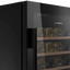 Стеклянная дверь — дополнительный изящный штрих к общему дизайну модели. Специальное покрытие защищает вино от влияния ультрафиолетовых лучей, которые проникают, если шкаф находится в солнечной комнате. Цвет корпуса — черный.