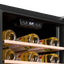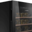 Стеклянная дверь — дополнительный изящный штрих к общему дизайну модели. Специальное покрытие защищает вино от влияния ультрафиолетовых лучей, которые проникают, если шкаф находится в солнечной комнате. Цвет корпуса — черный.