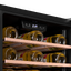 Стеклянная дверь — дополнительный изящный штрих к общему дизайну модели. Специальное покрытие защищает вино от влияния ультрафиолетовых лучей, которые проникают, если шкаф находится в солнечной комнате. Цвет корпуса — черный.
