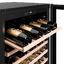 Современные винные шкафы всех типов, в том числе компрессорные, темоэлектрические и абсорбционные, оснащаются электронной системой управления — кнопочной или сенсорной. Панель управления, с помощью которой производится регулировка параметров работы, может размещаться внутри винного шкафа за дверцей или снаружи в верхней части корпуса. Второй вариант более удобен, поскольку для изменения параметров не нужно открывать дверцу. Кроме того, такое расположение панели управления позволяет поддерживать более стабильную температуру в камере. Однако для больших винных шкафов в классическом стиле из ценных пород дерева предпочтительнее скрытая панель управления, которая не портит их внешний вид.