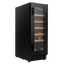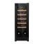 Стеклянная дверь — дополнительный изящный штрих к общему дизайну модели. Специальное покрытие защищает вино от влияния ультрафиолетовых лучей, которые проникают, если шкаф находится в солнечной комнате. Цвет корпуса — черный.
