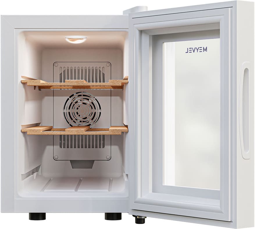 Для длительного сохранения установленных параметров в винных шкафах Meyvel используется дверца с многослойным остеклением. Такое решение позволяет удерживать холод внутри камеры вне зависимости от температуры в помещении, а также сохранить температуру при отключении электроэнергии.