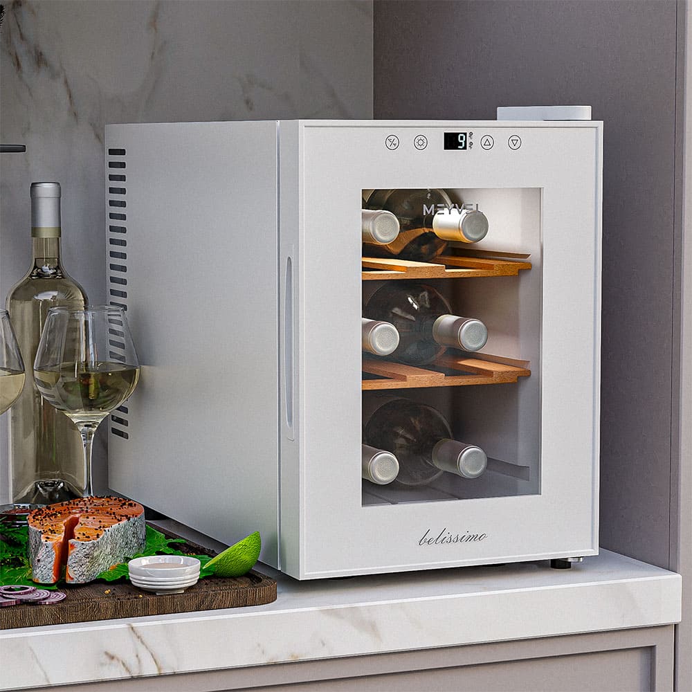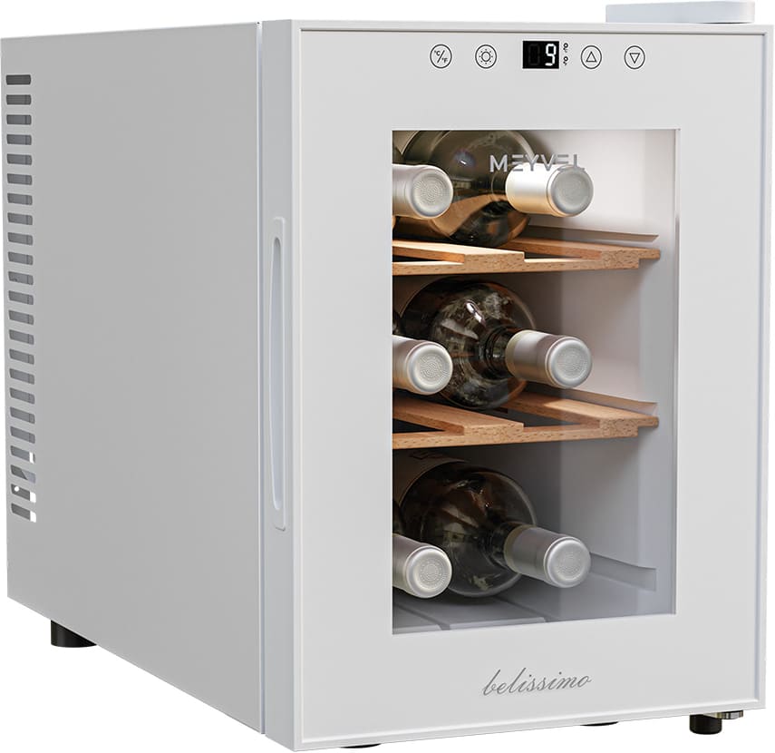 Винный холодильник Meyvel MV06-TWF1-Next имеет одну температурную зону, в которой можно разместить бутылки и единовременно выставить только одну комбинацию настроек. Он устанавливается отдельно, что удобно, если у вас есть специальное помещение — кладовая, погреб и т.д. Благодаря компактным размерам данная модель — отличный выбор для офиса, гостиничного номера. Количество бутылок, которое можно разместить с учетом полной комплектации и из расчета объема бутылки 0,75 л, — 6 шт.