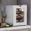 Стеклянная дверца винного шкафа — опция, которая решает сразу несколько задач. Прежде всего, она обеспечивает хороший обзор, позволяет контролировать коллекцию и демонстрировать ее, не открывая дверцу и не нарушая температурный режим. Стекло не только позволяет изолировать вино от наружного воздуха, но и не пропускает посторонние запахи. Прямые солнечные лучи также отрицательно влияют на качество вина, вызывая окисление танина — соединения, которое в нем содержится, и напиток становится горьким. Стеклянные дверцы снабжаются фильтрами или покрытием, защищающим бутылки по ультрафиолета. Способы защиты могут быть самыми разными — от наклеенной пленки до специального напыления. Иногда в дверцу устанавливается зеркальное стекло, в других случаях на него наносят тонировку в технике шелкографии.