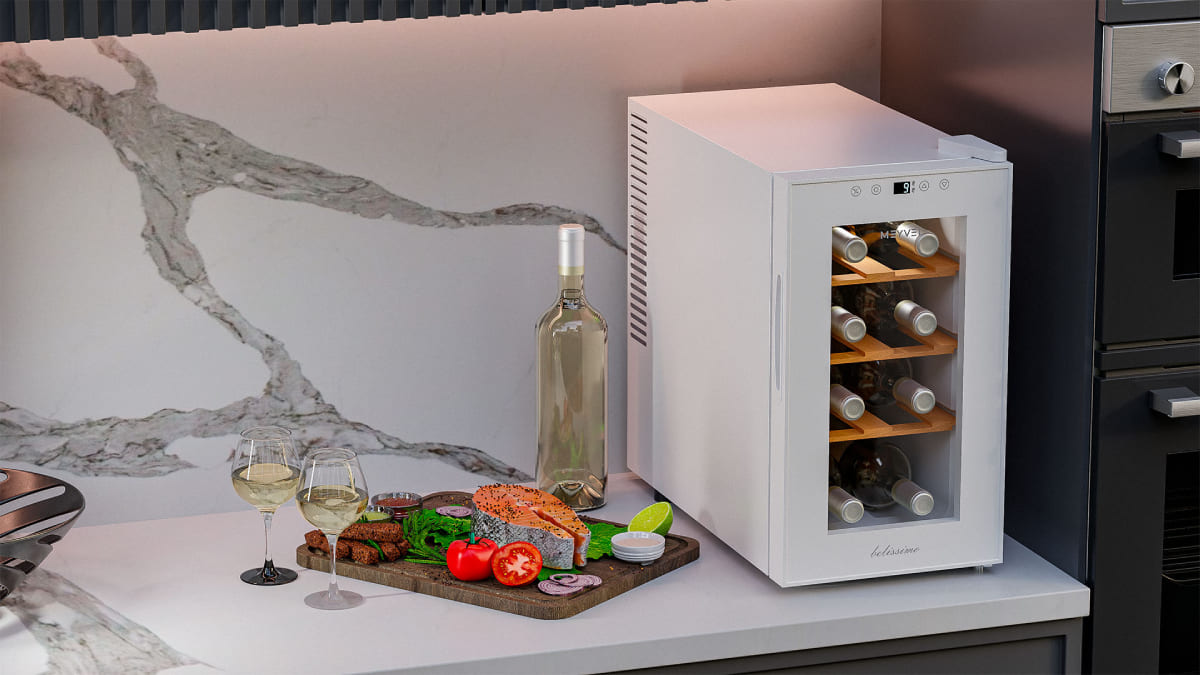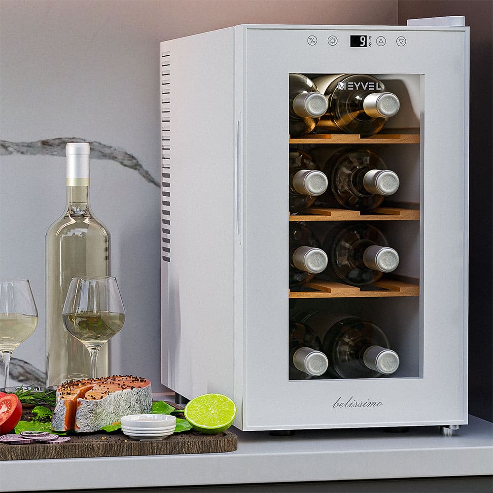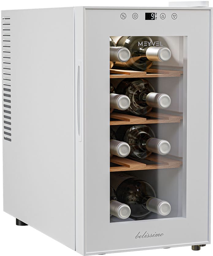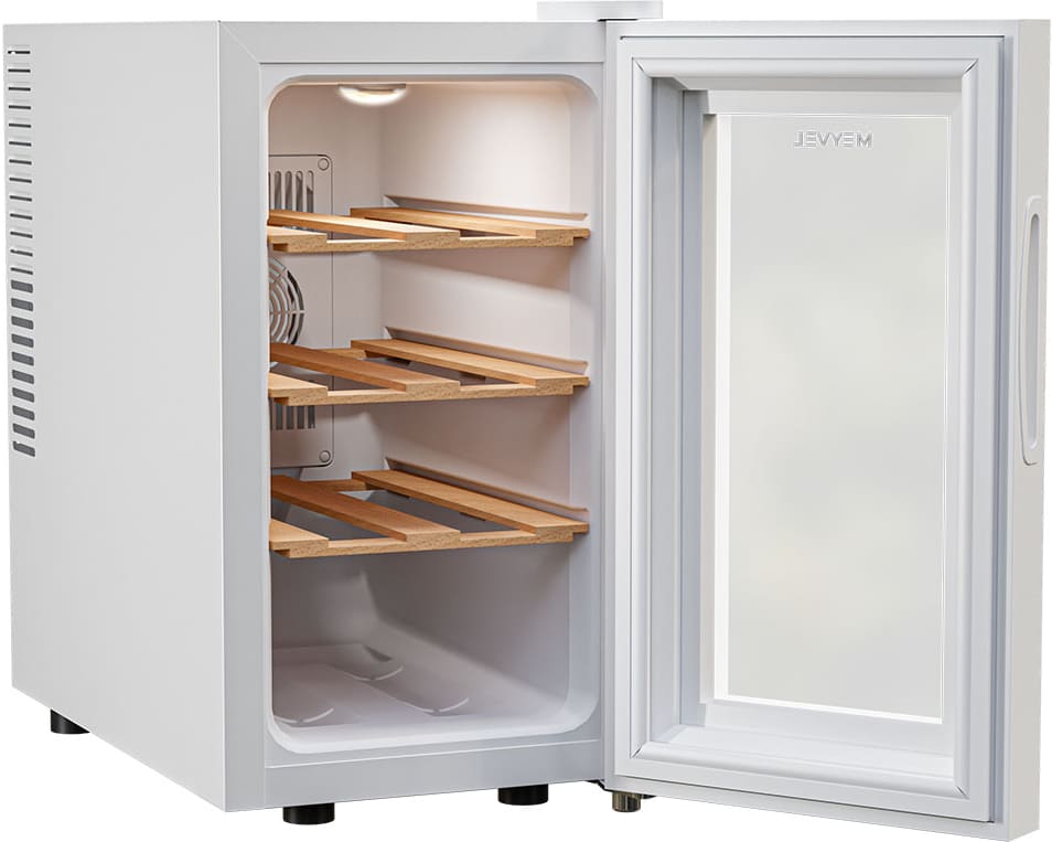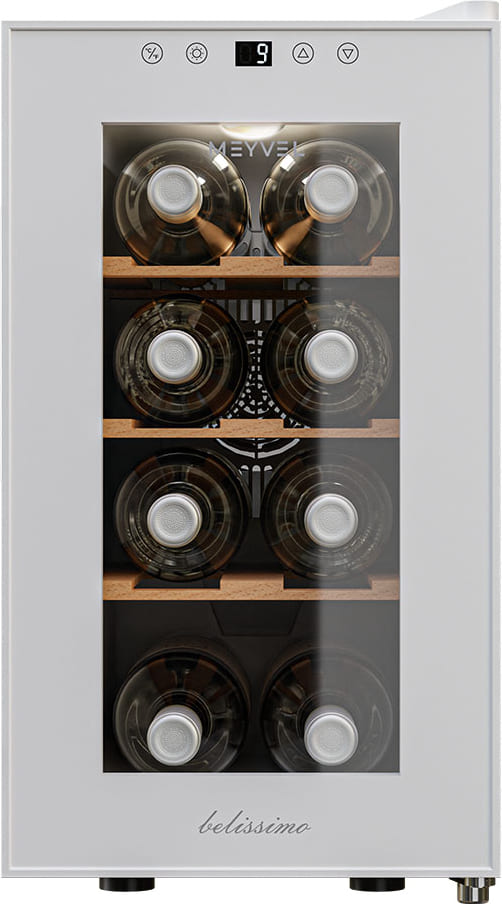 Винный холодильник Meyvel MV08-TWF1-Next имеет одну температурную зону, в которой можно разместить бутылки и единовременно выставить только одну комбинацию настроек. Он устанавливается отдельно, что удобно, если у вас есть специальное помещение — кладовая, погреб и т.д. Благодаря компактным размерам данная модель — отличный выбор для офиса, гостиничного номера. Количество бутылок, которое можно разместить с учетом полной комплектации и из расчета объема бутылки 0,75 л, — 8 шт.