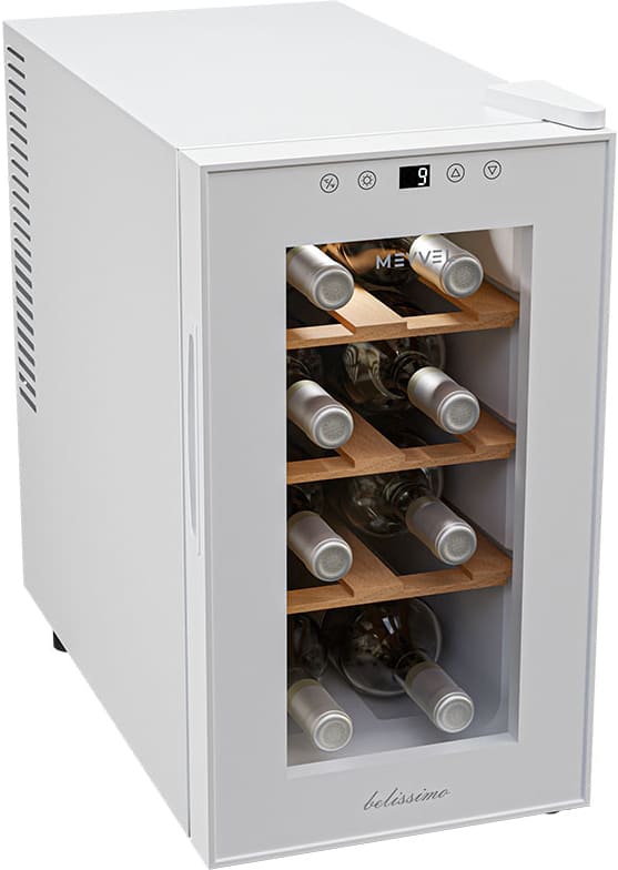 Специальное покрытие защищает вино от влияния ультрафиолетовых лучей, которые проникают, если шкаф находится в солнечной комнате. Хранение становится еще безопаснее и герметичнее благодаря нескольким слоям стекол. Цвет корпуса — белый.