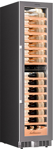 Ширина винного шкафа, как и другие их габариты, обязательно учитывается при выборе модели для домашнего или профессионального использования. Встраиваемые и отдельно стоящие модели выпускаются в самом широком ассортименте, так что разброс значений максимально велик. Неизменным спросом пользуются винные шкафы стандартной ширины — от 40 до 80 см, в современном и классическом стиле. Для встраиваемых шкафов наиболее удобной является ширина 60 см, позволяющая устанавливать их в кухонную тумбу или колонну. Вместимость их может быть самой различной и зависит в большей степени от высоты прибора. Маленькие винные шкафы с размещением на столешнице или даже с креплением к стене, рассчитанные на хранение от одной до десяти бутылок, могут иметь минимальную ширину от 13 см. На полках у них обычно помещается не более 5 бутылок, и используются они для охлаждения вина перед подачей. Большие винные шкафы с несколькими камерами и температурными зонами для длительного хранения и созревания разных сортов вина могут иметь ширину до 180 см, а максимальное значение этого параметра может составить 300 см. Как правило, это отдельно стоящие модели в деревянном корпусе с камерами side-by-side.