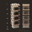 Полки в винных шкафах позволяют размещать бутылки для хранения в горизонтальном положении. Это необходимо, чтобы пробка постоянно смачивалась жидкостью и не пересыхала. Плотно закрытая пробка гарантирует, что внутрь бутылки не проникнет наружный воздух. Кислород, содержащийся в воздухе, может стать причиной ухудшения вкуса вина и даже его скисания. Кроме того, горизонтальное положение позволяет лучше оценить количество осадка. Материал изготовления полок выбирается, исходя из требований, предъявляемых к содержанию коллекции вин. Одним из основных требования является отсутствие или максимальное сокращение вибрации и хорошая фиксация бутылок на месте хранения. Даже если полка выдвигается, бутылки должны оставаться на своем месте. Второе требование исключает применение стеклянных полок, как в обычном холодильнике: на них почти невозможно зафиксировать бутылки.
