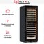 Современные винные шкафы всех типов, в том числе компрессорные, темоэлектрические и абсорбционные, оснащаются электронной системой управления — кнопочной или сенсорной. Панель управления, с помощью которой производится регулировка параметров работы, может размещаться внутри винного шкафа за дверцей или снаружи в верхней части корпуса. Второй вариант более удобен, поскольку для изменения параметров не нужно открывать дверцу. Кроме того, такое расположение панели управления позволяет поддерживать более стабильную температуру в камере. Однако для больших винных шкафов в классическом стиле из ценных пород дерева предпочтительнее скрытая панель управления, которая не портит их внешний вид.