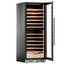 Электронное управление помогает быстро разобраться в том, как функционирует эта модель, и легко настроить все необходимые параметры. На дисплее отображаются данные, которые собирают датчики в камере. Лампочки, расположенные внутри, хорошо подсвечивают бутылки. Всего полок, на которых можно разместить коллекцию, в шкафу 12 шт.