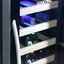 Кнопки для управления подсветкой выносятся на панель управления. Лампы синего, белого или голубого цветов могут располагаться в верхней части камеры или на боковых сторонах. Дополнительное освещение может устанавливаться в винных холодильниках с зоной для сервировки: она обеспечивает лучший обзор и доступ при подготовке вина к подаче.