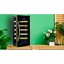 Производители предлагают винные шкафы, оснащенные одной, двумя, тремя и четырьмя камерами, которые могут располагаться как друг под другом, так бок и бок. Самые популярные — однокамерные модели, ассортимент которых особенно широк, но втором месте — двухкамерные. Над заметить, что количество камер не зависит напрямую от габаритов изделия: например, однокамерные модели увеличенных габаритов — далеко не редкость. Их высота может варьироваться в пределах от 14 см до 219 см, а ширина — от 13 см до 150 см.