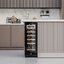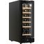 Компактный винный шкаф в корпусе черного цвета с удобной накладной ручкой и правым дверным упором. Стеклопакет из двух слоев с тонировкой защищает содержимое от ультрафиолета, а стальной корпус сочетается с полками из массива бука, которые видны через стекло и добавляют интерьеру тёплую фактуру. Дверь можно перенавесить — это упрощает монтаж в разных сценариях размещения.