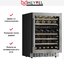 Винный шкаф Meyvel MV46PRO-KST2 — компактная модель, которая при своих небольших габаритах способна вместить до 46 бутылок. Помимо хороших возможностей по расположению напитков, прибор имеет две температурные зоны, поэтому можно размещать напитки с различными условиями для хранения. Настройки происходит при помощи сенсорной панели управления и цифрового дисплея. Все элементы имеет графические подсказки, легко активируются легким нажатием. Полки легко выдвигаются, что обеспечивает удобную загрузку и выгрузку. Они выполнены из массива бука, что делает их прочным, надежным и долговечным решением. Прибор оборудован как панорамным, так и демонстрационным освещением. Тихая работа — еще одно преимуществ винного шкафа Мейвел MV46PRO-KST2. Уровень шума не превышает 40 дБ, что является хорошим значением, которое не создает дискомфорт для пользователя.