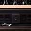 Современные винные шкафы всех типов, в том числе компрессорные, темоэлектрические и абсорбционные, оснащаются электронной системой управления — кнопочной или сенсорной. Панель управления, с помощью которой производится регулировка параметров работы, может размещаться внутри винного шкафа за дверцей или снаружи в верхней части корпуса. Второй вариант более удобен, поскольку для изменения параметров не нужно открывать дверцу. Кроме того, такое расположение панели управления позволяет поддерживать более стабильную температуру в камере. Однако для больших винных шкафов в классическом стиле из ценных пород дерева предпочтительнее скрытая панель управления, которая не портит их внешний вид.