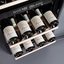 Электронное управление помогает быстро разобраться в том, как функционирует эта модель, и легко настроить все необходимые параметры. На дисплее отображаются данные, которые собирают датчики в камере. Лампочки, расположенные внутри, хорошо подсвечивают бутылки. Всего полок, на которых можно разместить коллекцию, в шкафу 4 шт.